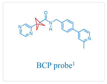 If you are considering to: we will be happy to consider a joint endeavour. To give you an idea of one such project, consider our quest to understand the SAR of C-59. In this case, we wondered if aryl ring A of C-59 was a mere spacer or if it was essential for the compound’s biological activity. Replacing A with BCP helped us reach a conclusion in an unambiguous fashion. Read more here:
